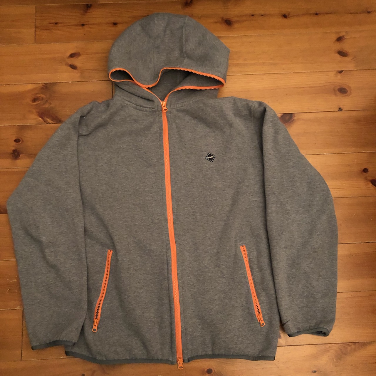 でも冷える夜とかにこれほど便利なものはなくて、また夜ランでも使えそうなので、欲しいなって思いまして、例によって今年、精力的に買っているF.C.R.B.のジップアップパーカーを購入しました。